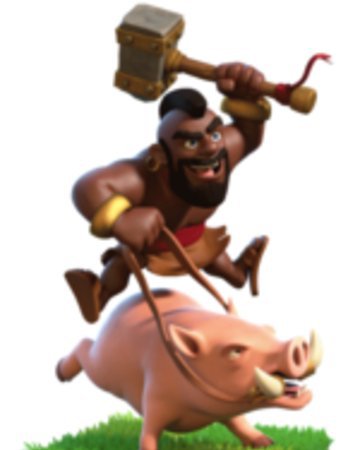 La carta mas querida entre todas es el "montapuercos", es en un hombre musculoso que monta su puerco y que golpea con su martillo para destruir las torres enemigas.
